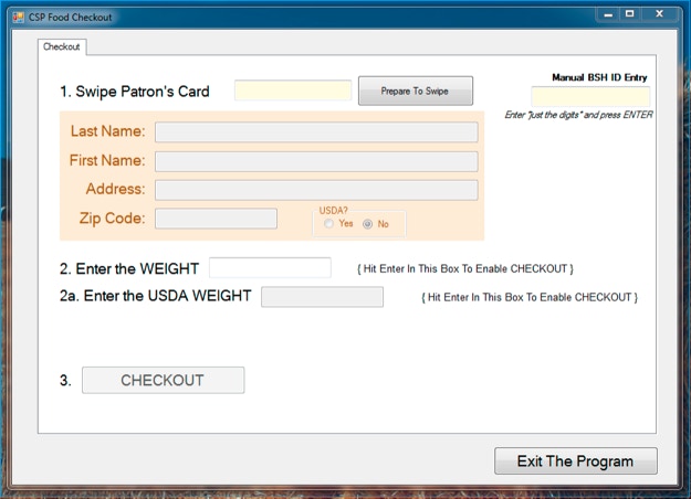 Enter either the WEIGHT or, for a USDA Patron, the USDA WEIGHT, then press enter. Then press the CHECKOUT button to save the transaction.