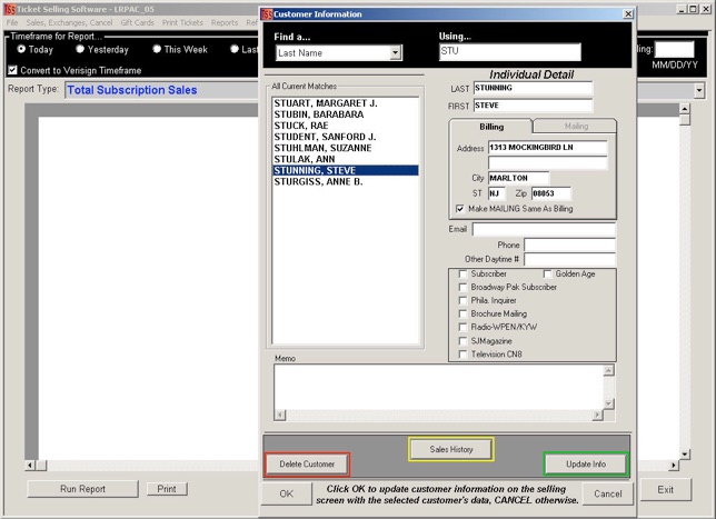 Customer Info Menu